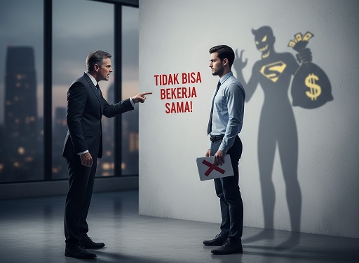 Logika mereka ini sungguh terbalik, menjungkirbalikkan nalar yang kita punya. Pimpinan korup itu akan datang ke Anda, berkata manis: “Tolong setujui saja tagihan fiktif ini. Cepat. Kita harus ‘kerja sama’.” Begitu Anda yang jujur menjawab: “Maaf, Pak. Dana ini tidak ada fisiknya. Saya tidak bisa tanda tangan. Ini penggelapan,” seketika wajahnya berubah. Anda langsung dicap: “Dasar tidak bisa bekerja sama! Sulit diatur! Ganggu stabilitas tim!” Padahal, yang terjadi bukan masalah etos kerja. Masalahnya, Anda gagal diajak kerja sama untuk mencuri. Titik.