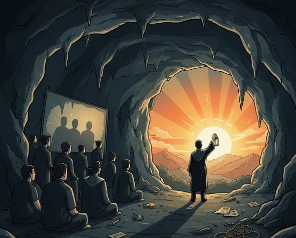 Lokapalanews.id | Saya jadi teringat cerita Plato. Tentang orang-orang yang terpenjara di dalam gua. Seumur hidup mereka hanya melihat bayangan di dinding. Mereka pikir itulah kenyataan. Sampai suatu saat, ada satu orang yang berani keluar. Melihat matahari.