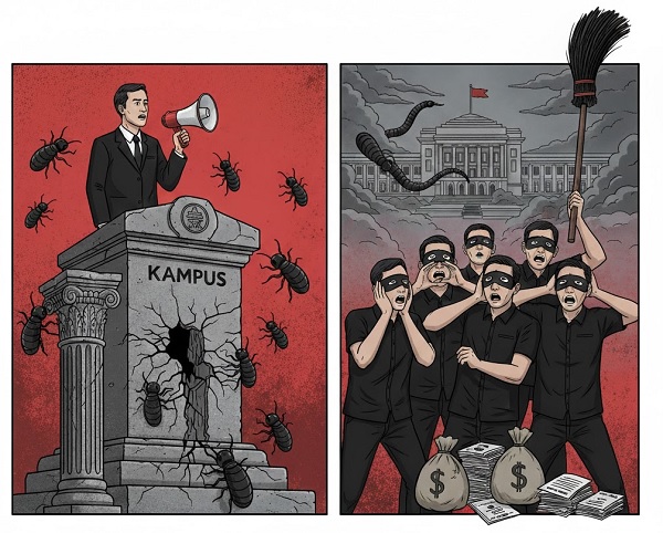 Dunia akademik kita sedang tidak baik-baik saja. Banyak kampus yang benteng etikanya sudah jebol. Akademisi yang seharusnya jadi pengawal moral, malah diminta diam. Katanya demi harmoni. Harmoni macam apa yang dibangun di atas kebohongan?