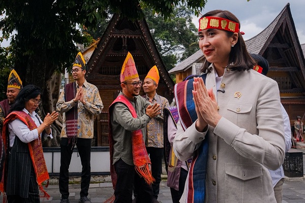 Menteri Pariwisata Widiyanti Putri Wardhana saat mengunjungi Desa Wisata Huta Siallagan di Samosir guna memastikan kesiapan daya tarik budaya Danau Toba.